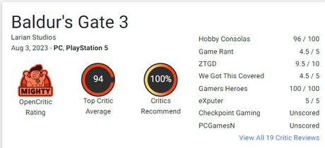 Det gør Baldur's Gate III til et af de højest vurderede spil, ikke bare i år, men også i branchens historie.