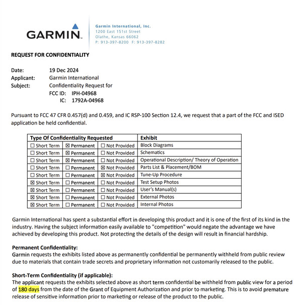 For nylig nævnte Federal Communications Commission (FCC)-databasen en enhed under kodenavnet "A04968", som blev certificeret i december 2024. Den officielle dokumentation afslører dog ikke mange detaljer, bortset fra at enheden forventes at blive udgivet i sommeren 2025. Det har sat gang i rygterne om en mulig opdatering af Forerunner-serien, som vil omfatte en ny model.