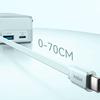 Det har et integreret 70 cm USB-C kabel med en automatisk tilbagetrækningsmekanisme, der kan modstå op til 20.000 brugscykler.