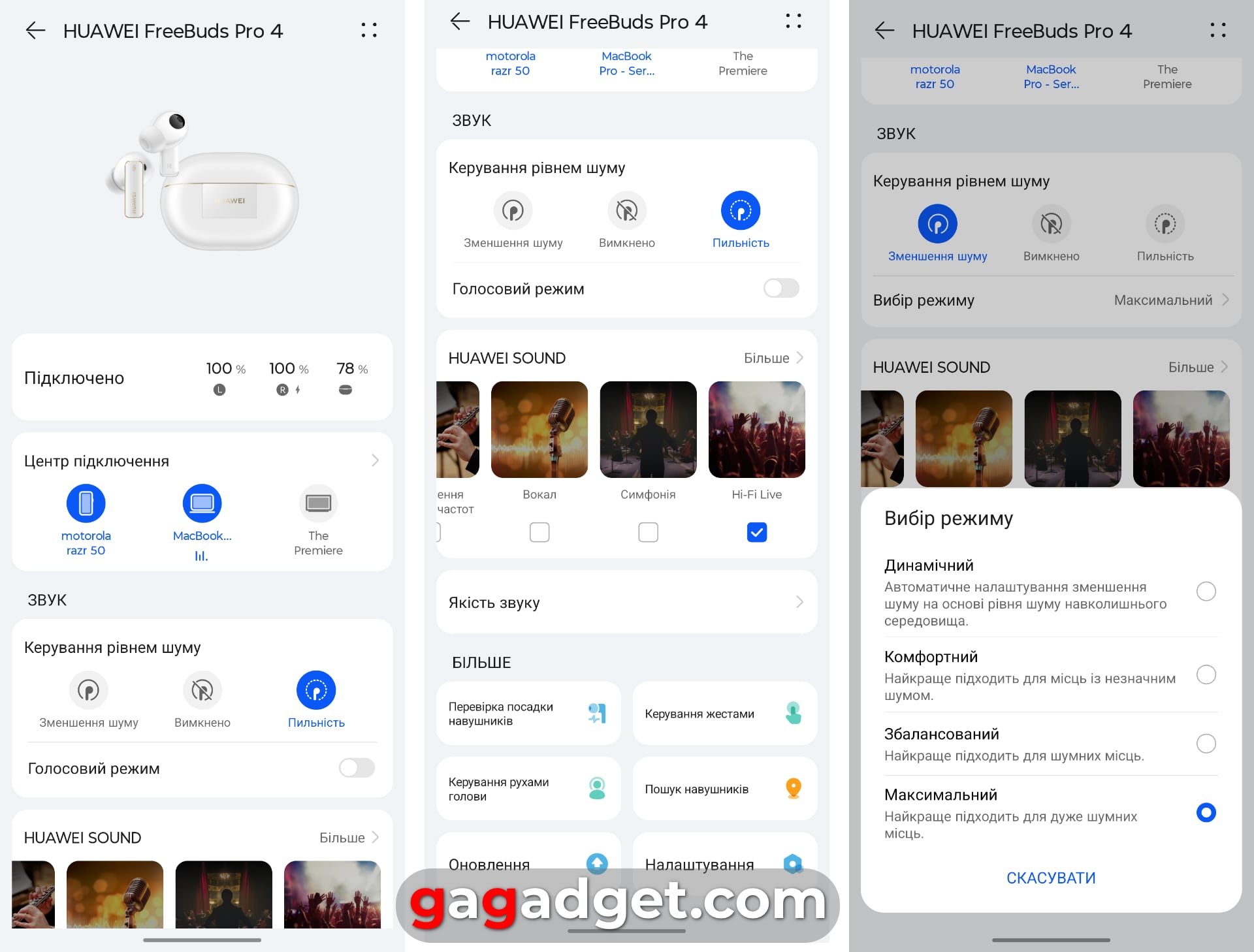 Der er ingen væsentlige ændringer i indstillingerne for hovedtelefoner i appen. Det er vigtigt at huske, at appen skal installeres enten via apk-filen (via QR-koden på æsken). Eller, som mig, den lange vej gennem installationen af HMS + Huawei AppGallery. Jeg valgte den anden mulighed, fordi jeg stadig bruger Huawei-ure, og jeg har et par Huawei-routere i mit hus på landet, som også kræver AI Life til at styre.