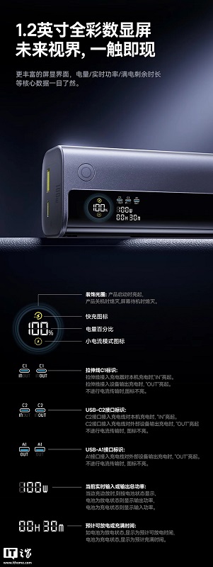Enheden har to porte: USB-C og USB-A, og den maksimale effektudgang for sidstnævnte er begrænset til 30W.