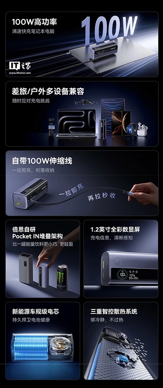 Dette er muligt takket være det 10000 mAh batteri og 100W udgangseffekt.